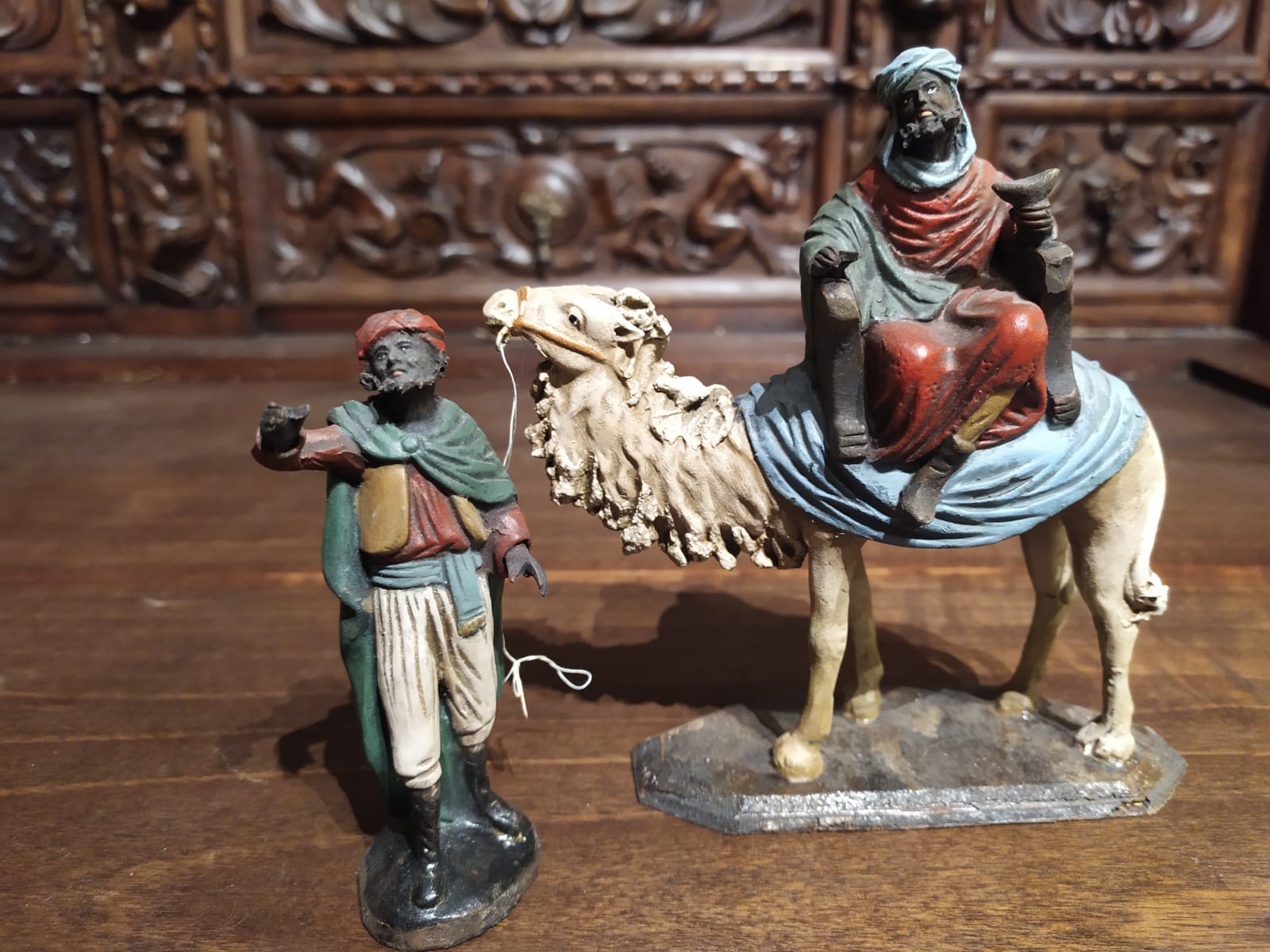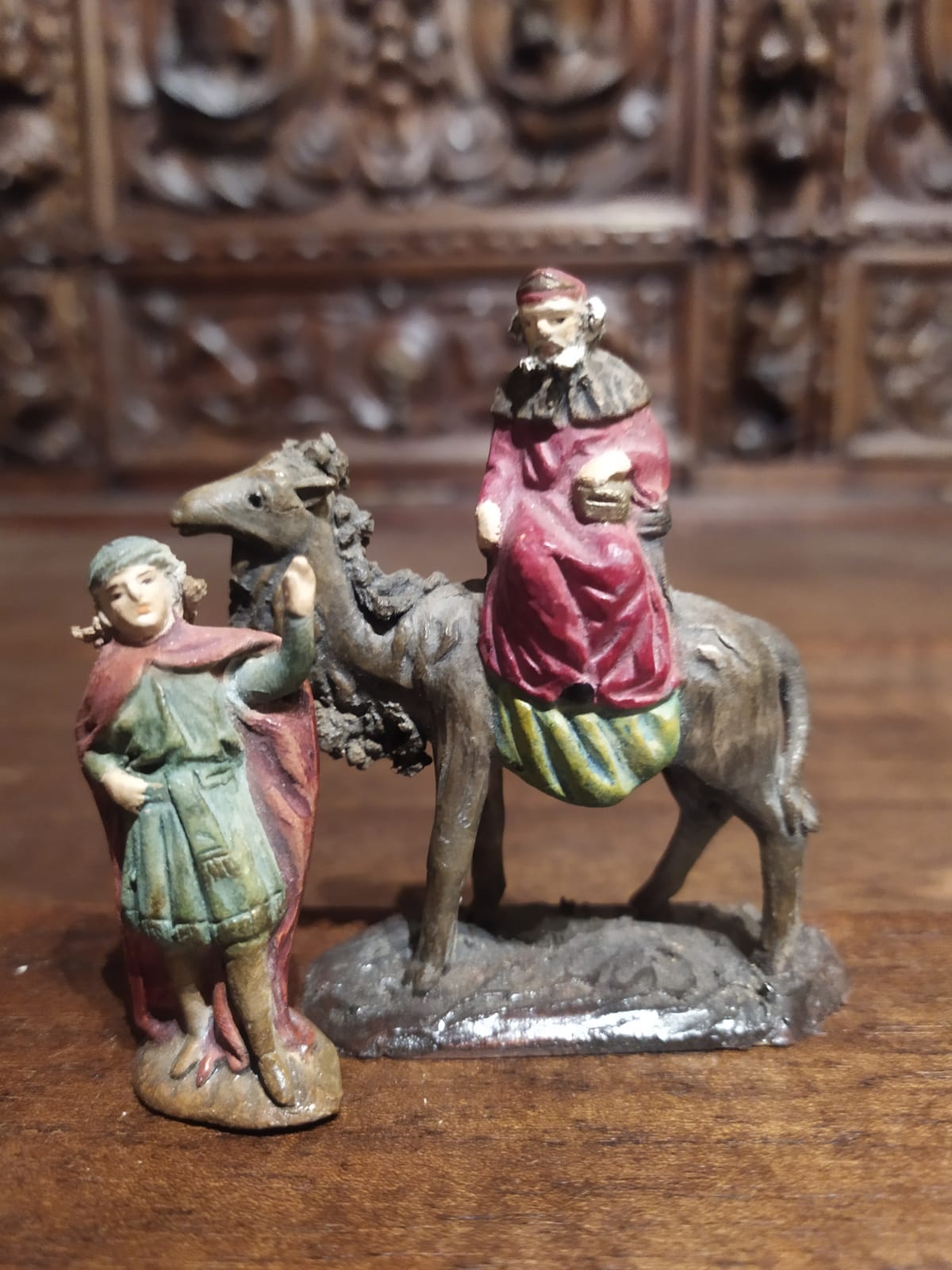 La figura que aporta Félix y que completa con el libro Vicent, me decanto por que sea una figura de los talleres de Serrano, que aún se les puede preguntar porque están en activo... y las razones ya las da Félix algo más arriba: el uso de turbantes, la fisonomía de las caras, las extremidades achaparradas (fijaros en las fotos posteriores, y la esbeltez en las figuras)...