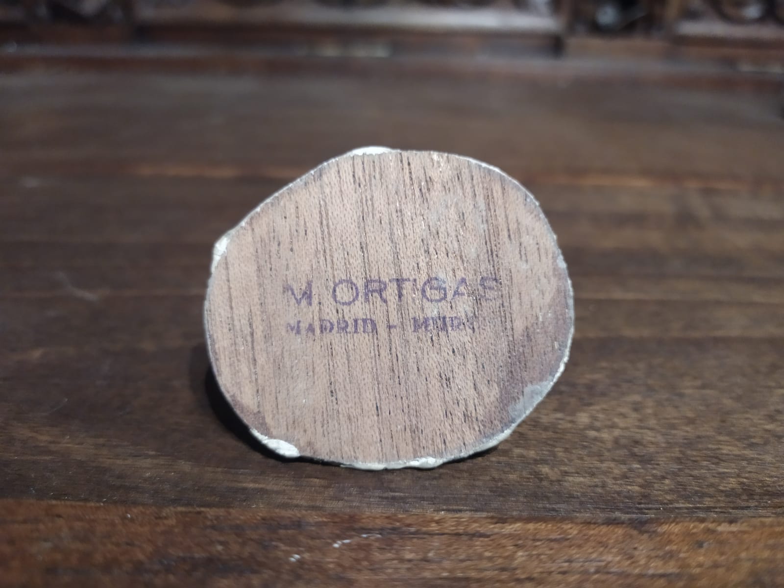 ..."No siempre están selladas (menos si son de pequeño formato), en el caso de la suya forman un conjunto con peana. Otro dato curioso que me dio para diferenciar las de Ortigas fueron que los ojos debían ¡brillar! con la luz al mover la figura ( en la foto es difícil de apreciar)."