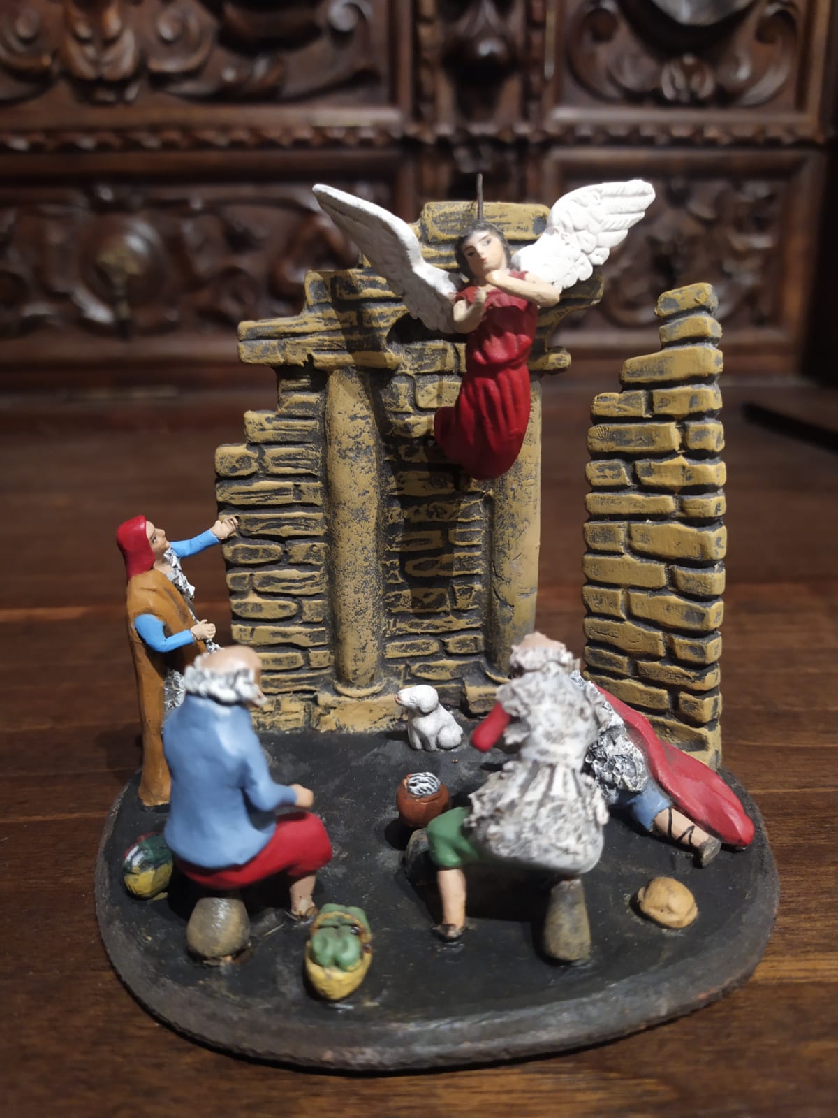 Despues de un proceso de limpieza, porque realmente lo peor de todo era la suciedad acumulada. Recuerdo que el pastor sentado con perro, entre el pie izquierdo y la túnica tenía trozos de periódicos mezclados con años de polvo y tierra acumulada... Pues eso, limpieza, y unos retoques superficiales, un brazo roto... y unas jornadas entretenidas en el primer verano de la pandemia.
