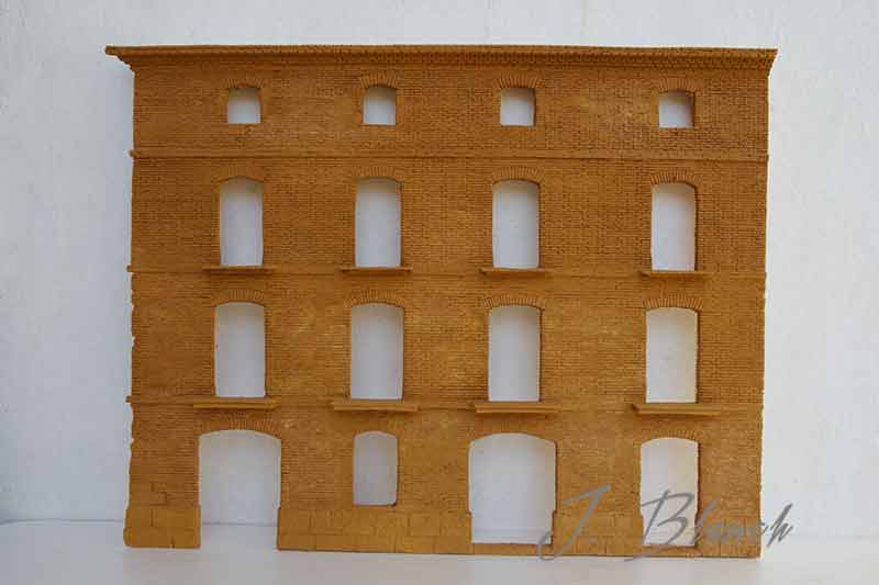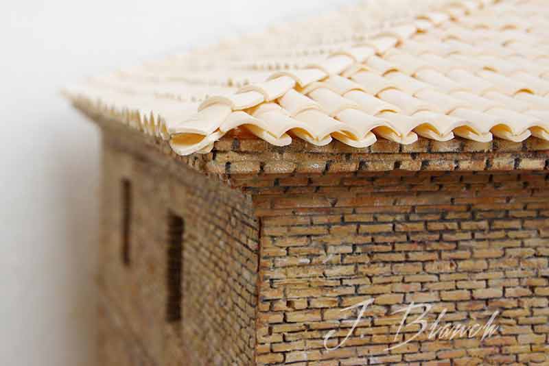 En cuanto al color oscuro de las ranuras entre los ladrillos, es color gris piedra mezclado con una muy pequeña cantidad de negro para oscurecer un poco más pintando todos las juntas con un pincel muy fino, el que yo he utilizado es un 000. En otros trabajos he probado con otras técnicas para el pintado de esas junturas entre ladrillos pero el resultado no me acaba de convencer.