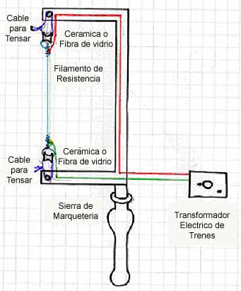 En la siguiente página (donde he sacado las fotos adjuntas) te explican como construir una "sierra de poliestireno" y too una "mesa de corte de poliestireno":