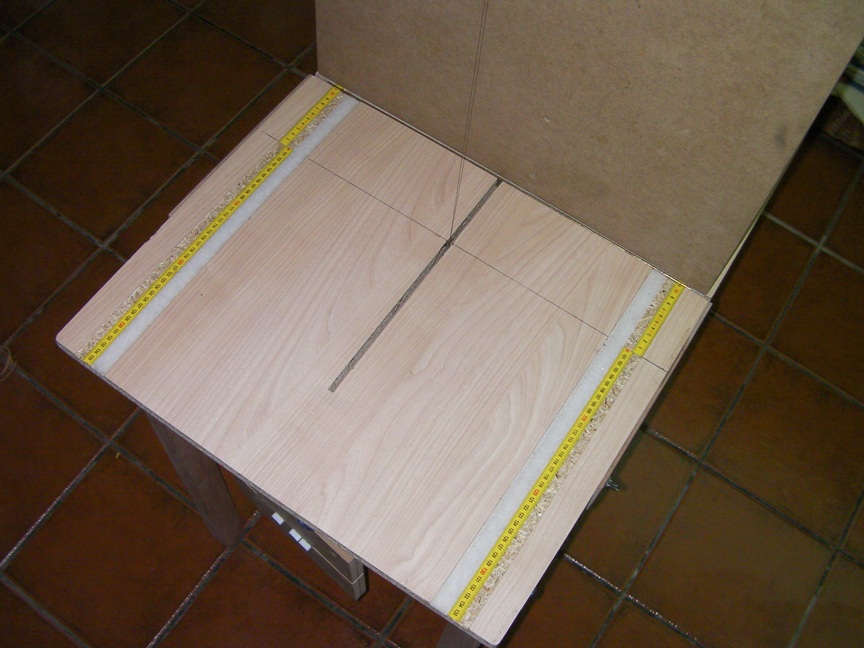 : ¿Cómo se sujeta la parte del tablero que vascula para poder cortar en visel? por mucho que lo intente, no veo dónde poner las bisagras...