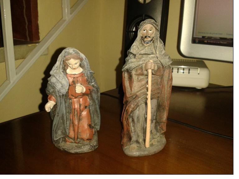 Buenas! Yo de ti pintaba a San José con tonos marrones y verdes y a María azules, rojos fuertes y verdes. Además yo enmelaría las piezas. Si quieres saber como hacerlo puedes verlo en las cosas de la Lola que hace enterados preciosos, espero haberte ayudado!