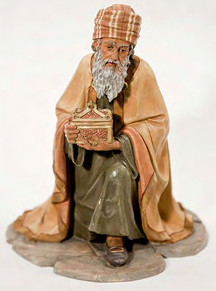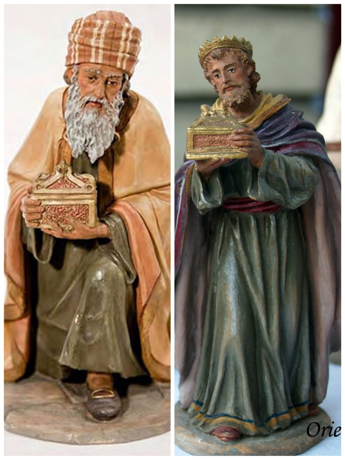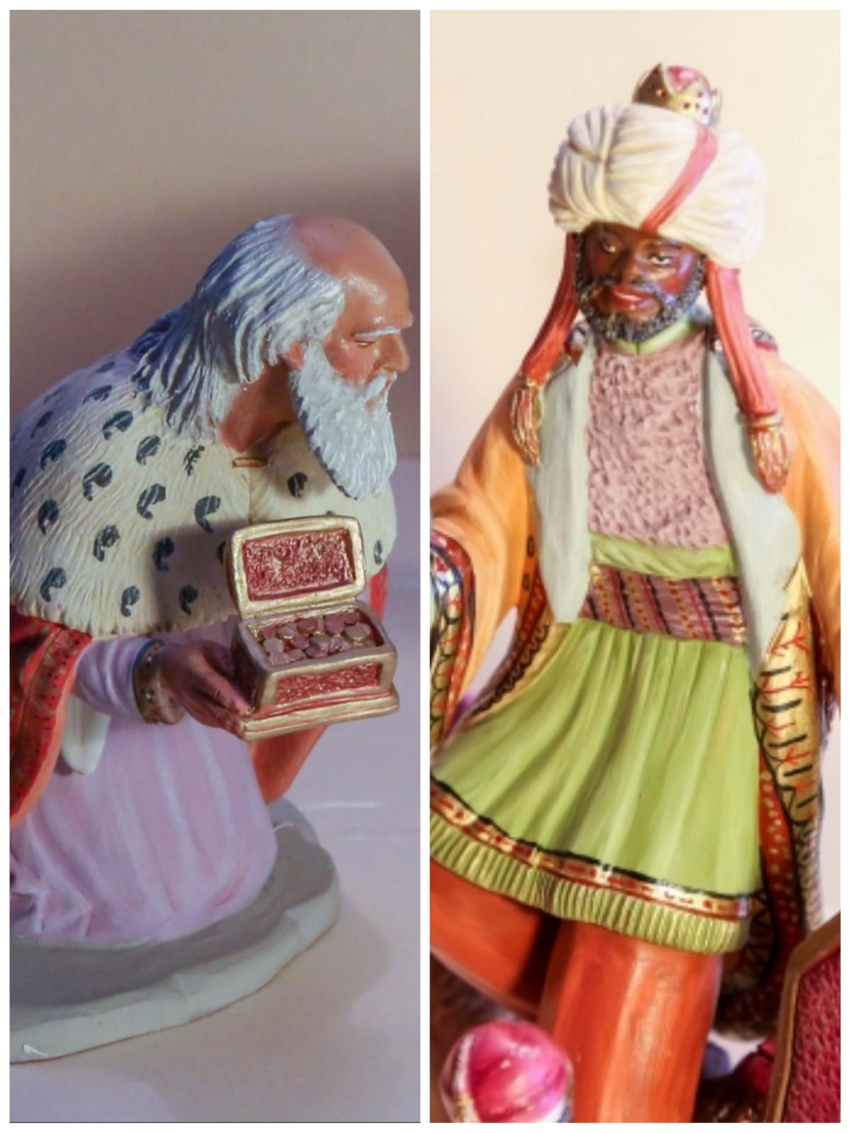 Estos reyes son una maravilla!!!, de 28 cms. del Museo Etnologico de Barcelona de 1945, la foto esta sacada del libro (pdf) de Ramon Albornà i Rovira Ismael Porta i Balanyà, Germans Castells, art i figures per al pesebre , Barcelona, Generalitat de Catalunya, Departament de Cultura, Direcció General de Cultura Popular i Associacionisme Cultural, 2018.