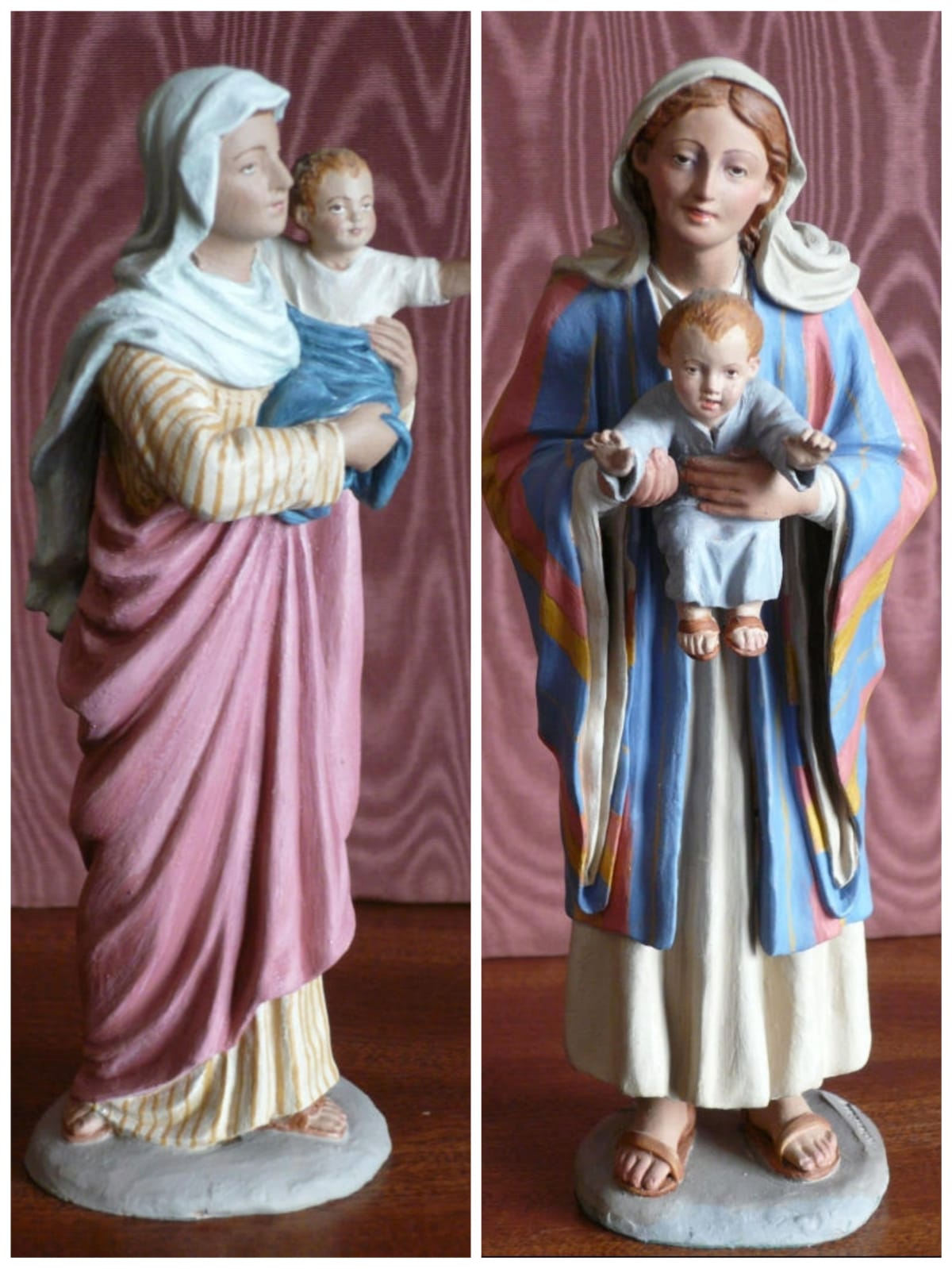 Revitalizado subo esta foto de las figuras completas del belén del año 1946 que Bethelem colgó en otro hilo y que como muy bien comenta casi seguro que es una reinterpretación del cuadro de la Sagrada Familia con Santa Isabel, el pequeño San Juan Bautista y un ángel de Orazio Borgianni.