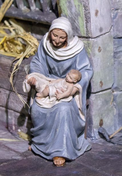 Me gustaría plantear un par de cuestiones. Quizá sean mis ojos, no os parece que el San José de la ofrenda de los Magos está "equivocado"? Es el único de todas las escenas que no tiene barba. En cambio en la presentación a los vecinos hay dos: el que entra por la puerta y el que tiene las manos juntas, con una indumentaria que se suele repetir. Yo diria que uno de los dos es de la escena de los Magos. Y otra, la indumentaria de la Virgen en los dioramas de "ayudando a Maria" y "Jesús en el taller". Es la primera vez que veo una representación de la virgen con este tipo de vestimenta. Tenéis alguna otra referencia parecida?
