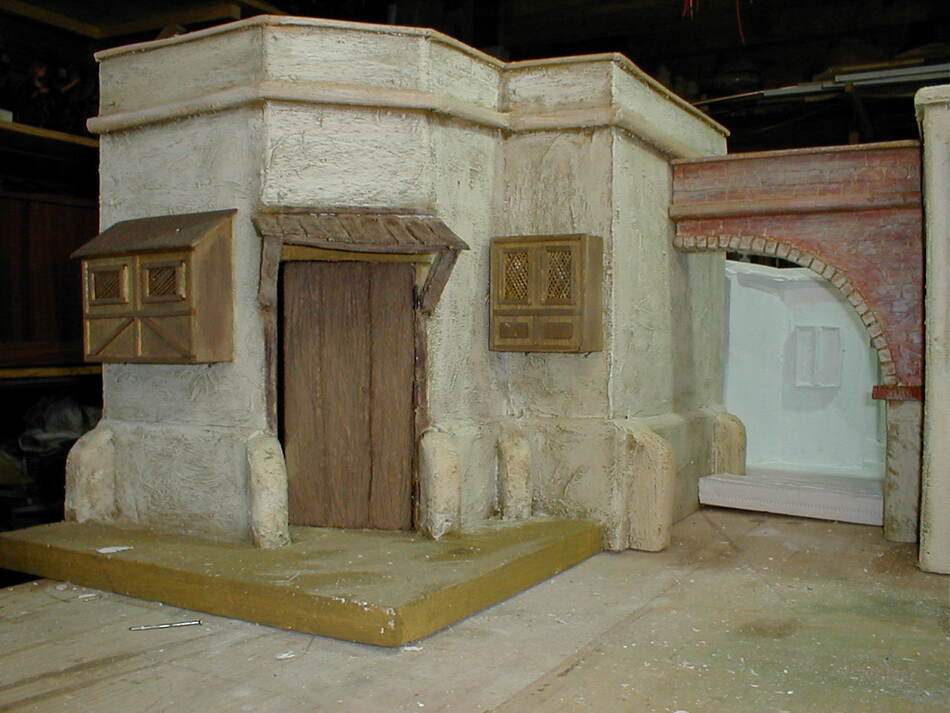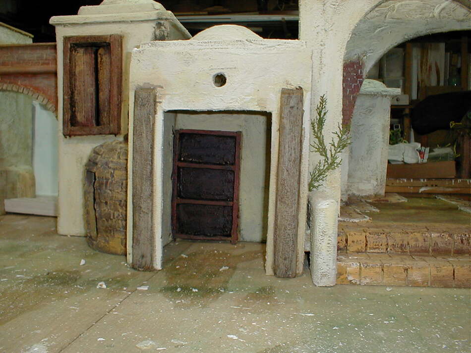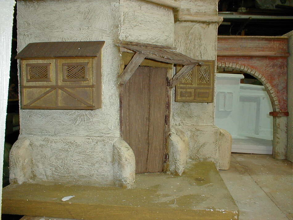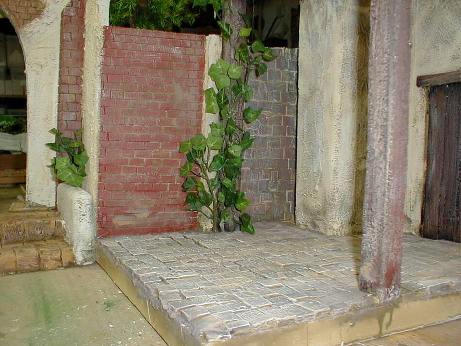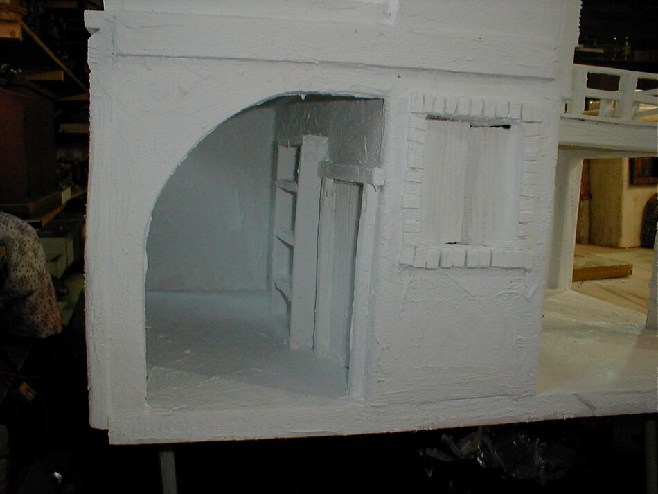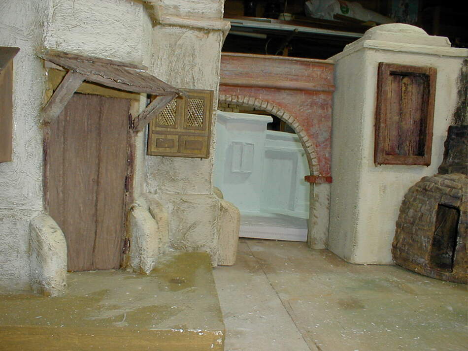 Al fondo de un arco, se ve una construccione que estan sin pintar, y al final la cocnstruccion que estoy haciendo ahora , que tambien está sin pintar.
