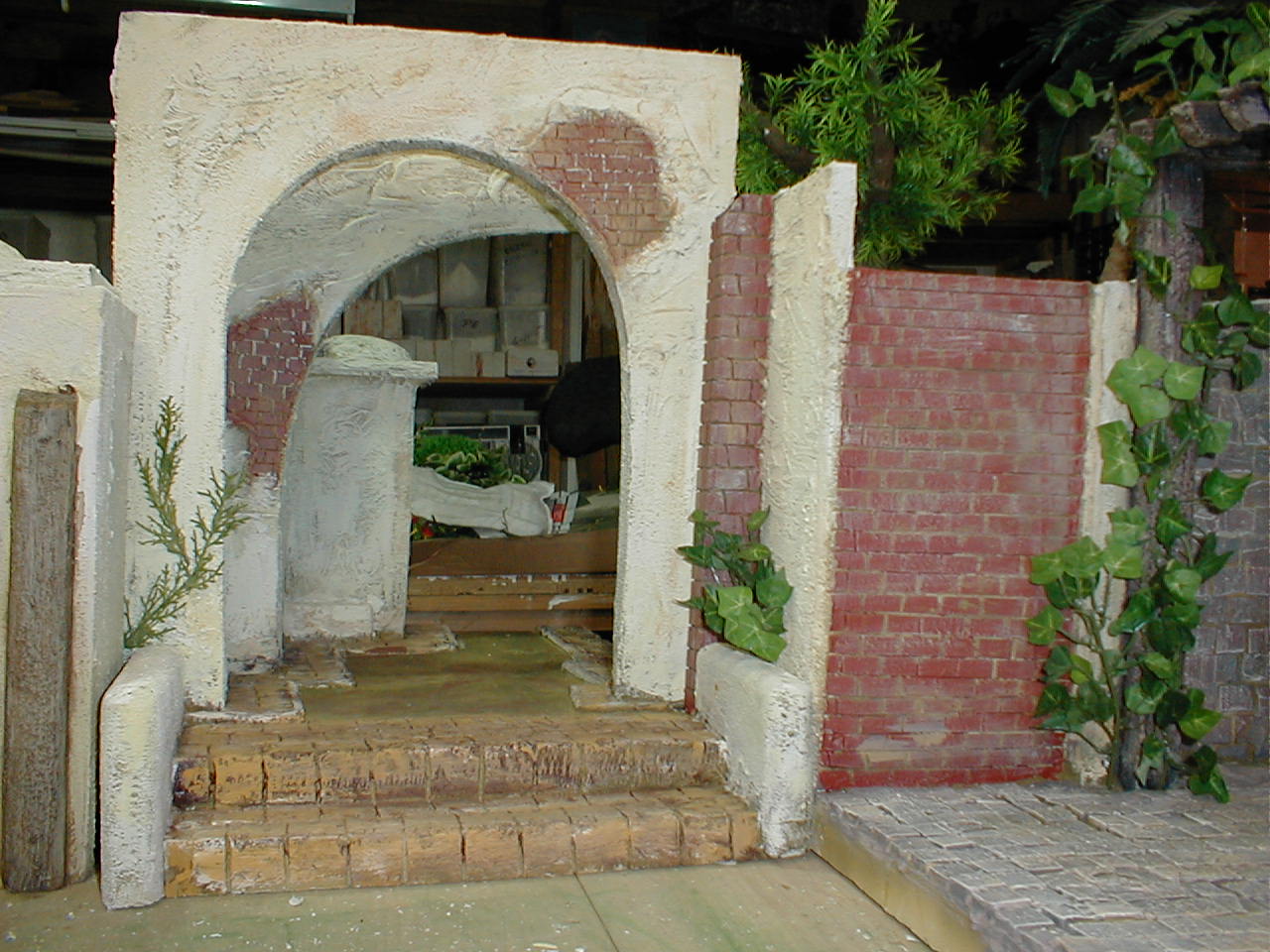 Al fondo de un arco, se ve una construccione que estan sin pintar, y al final la cocnstruccion que estoy haciendo ahora , que tambien está sin pintar.