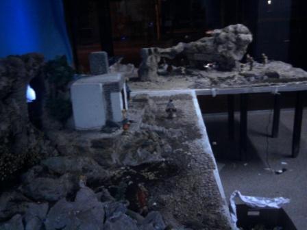 VAmos Gilda, unas lucecitas más y precioso. La rocas y la cueva te ha quedado bonitas y ese farolito, tipo calabaza, está muy bien, déjalo donde está, está estupendo.