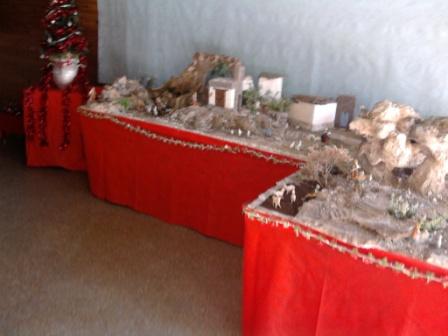 si quiero hacer lo del aserrin , pero tengo que ir a una carpinteria, coloree un poquito que habia juntado de una lijada del piso cuando lo plastificaron ja ja ja ( ciruja yo?) el color musgo me gusto, pero el otro tono que hice no. Me fijo si saque foto (saco fotos para ver los errores) , les dire que estoy viendo que hago para iluminarlo me quedo horriblemente oscuro sobre todo el nacimiento es baja la cueva y pequeña un espanto , pero esta .