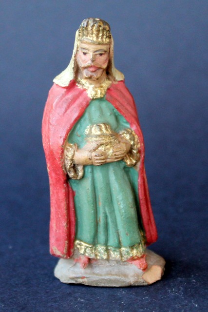 Os adjunto unos reyes adorando, de 5cm. y de terracota. La verdad es que tienen un trabajo muy fino, sus caras, los pliegues de las capas, el pintado... (aunque no se aprecie en la foto). No sé si alguién se atreve a ponerle autor, yo confieso que no, auque por su acabado me resisto a creer que sean de cacharrería.