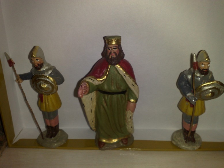 Esta es otra de mis figuritas, es popular pero con aspiraciones, tengo algunas mas de la misma mano pero las tengo en el campo, son de la misma mano por la caracteristica forma de pintar los ojos y la verdad es que estan muy bien modeladas, esta es normal pero las que tengo en el campo estan muy muy bien, acompañanado unos romanitos cacharreros.A por cierto en la base de Herodes pone GGo 15 subindice 3.