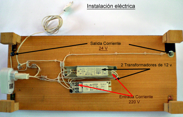 Monte todo el artilugio de madera, tornillos, conseguí dos transformadores con Outpout 12v (de viejos routers) y compre Hilo de Nicróm en Ebay y creo que este va a ser el problema.