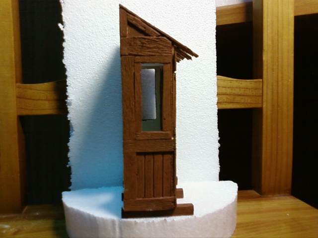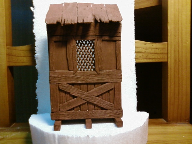 a mí, particularmente me gusta usar más la madera que el porex. Será por la escala con la que trabajo, para figuras de 14cms. Te pongo el modelo que copié de la revista Taller de Belén. La celosia la hice con palillos de dientes entrecruzados.