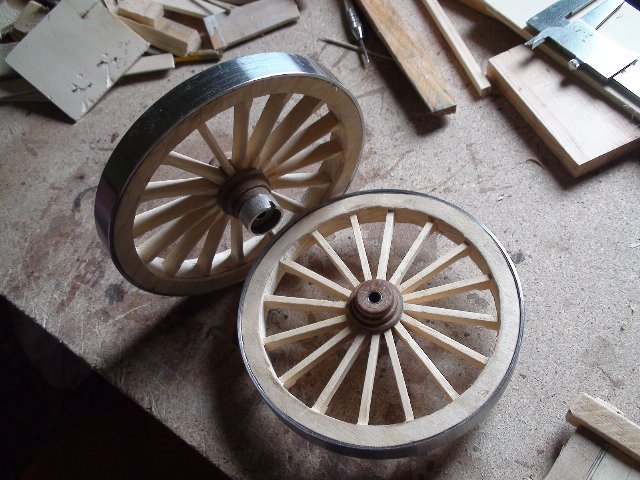 Bueno estas ruedas estan hechas a mano sobre el dibujo de la misma en un carton, con paxiencia y una lima los aros exteriores son cortados de un tubo y en las grandes torneados para poder acoplarlos al diametro de las ruedas hechas.