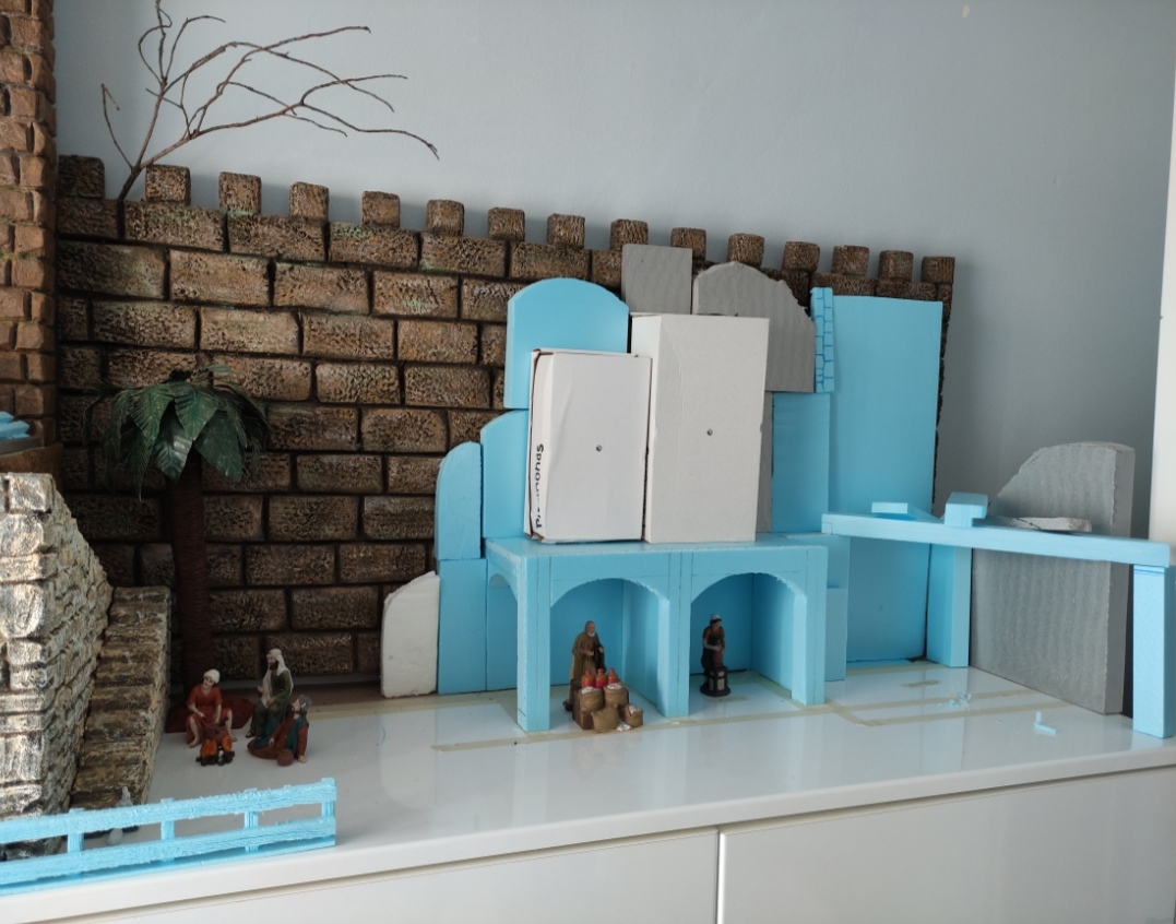 Jose veo que todo el belén está en un mismo plano, no hay fugas, por lo tanto, si quieres, siendo así, puedes proporcionar todos los objetos a las figuras de 12 cm de esta forma. Si tomamos la altura de un hombre en 175 cm debes dividir por 12 cm que te dará como resultado aprx. 14,6