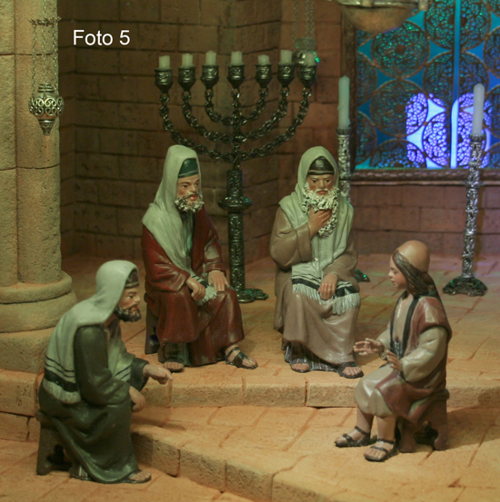 Dalen, el templo mide entre 40 y 50 cms. de altura, 90 cms. de ancho y unos 75-80 de fondo. Todo va en proporción de las figuras que son de 14 cms. de Mayo. Lo de la última foto también está realizado con abalorios. La menorá mide unos 12 cms. Es muy fácil de hacer. Ánimo, que las próximas navidades están cerca.