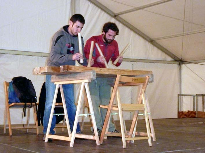 Por la tarde nos han amenizado con un recital de txalaparta, que es un instrumento de percusión tradicional vasco compuesto de dos soportes sobre los que van posados varios tablones de diferentes maderas (castaño, fresno etc.,) sobre los que los txalapartaris golpean con dos palos consiguiendo unos sonidos peculiares