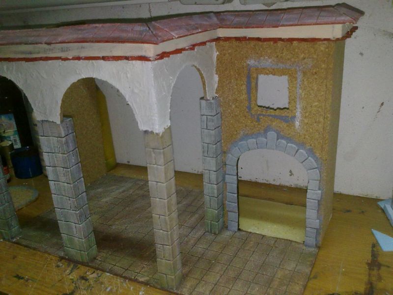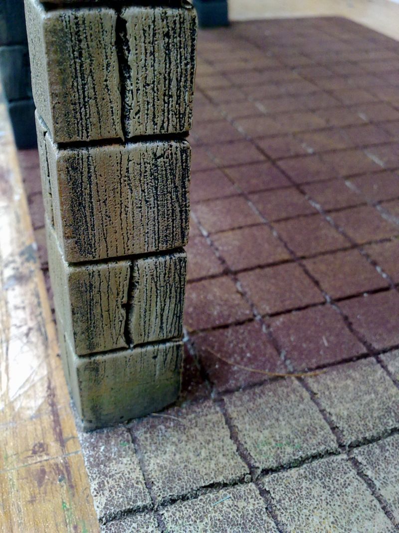 2) La textura de algunas piedras, por ejemplo en las columnas. En lugar de "rallarlas", que parece que tienen betas como la madera, darles golpes para que la textura resulte pétrea.