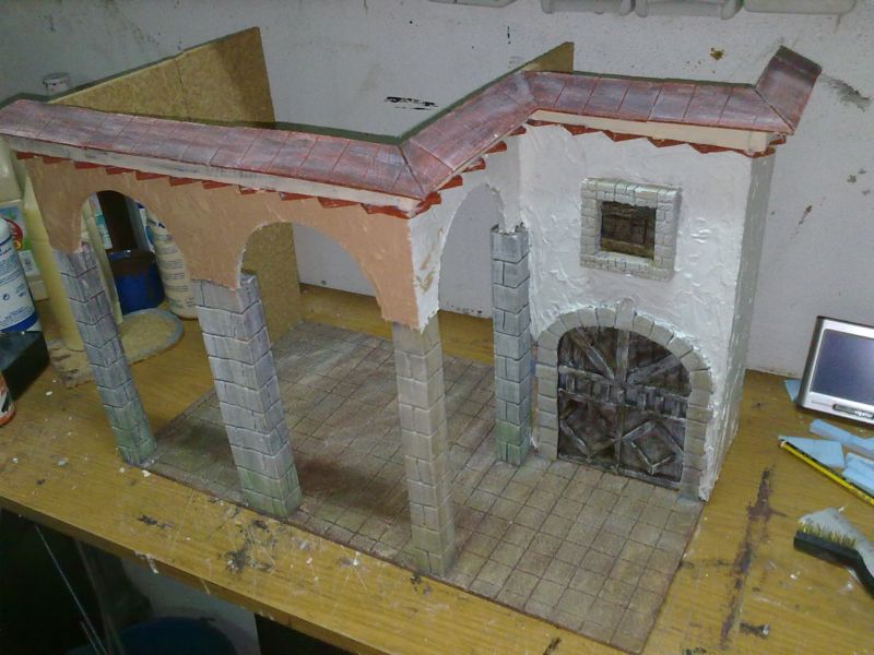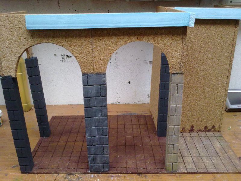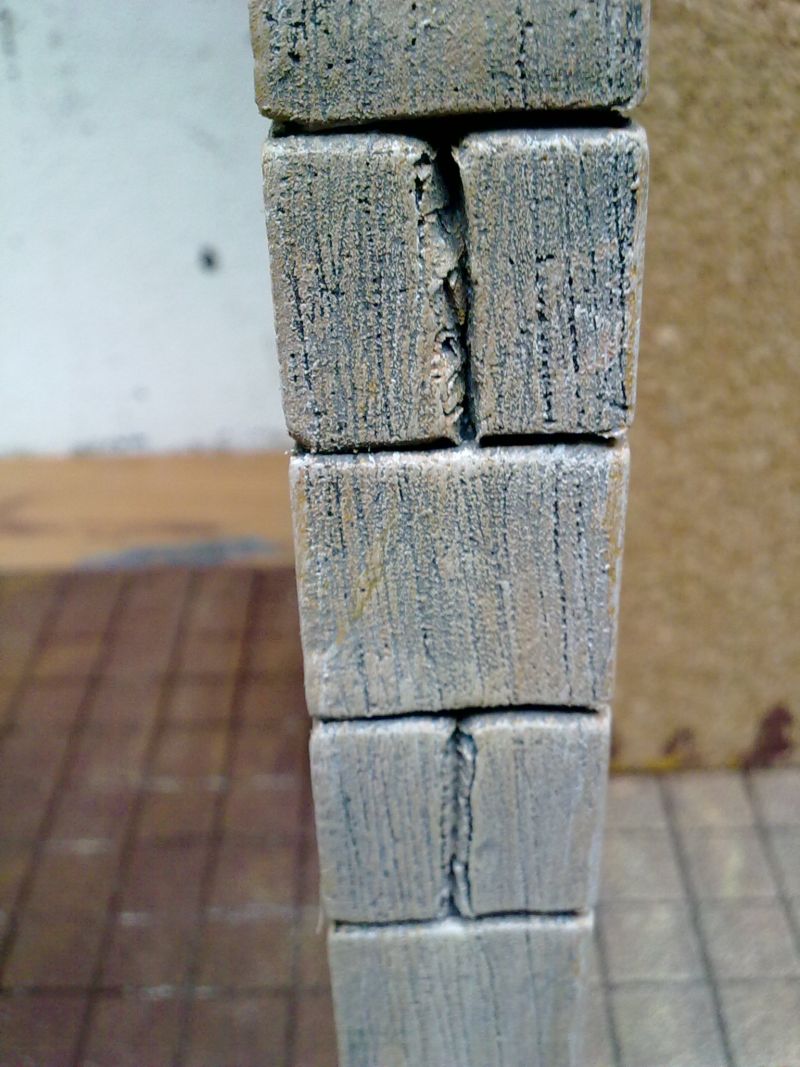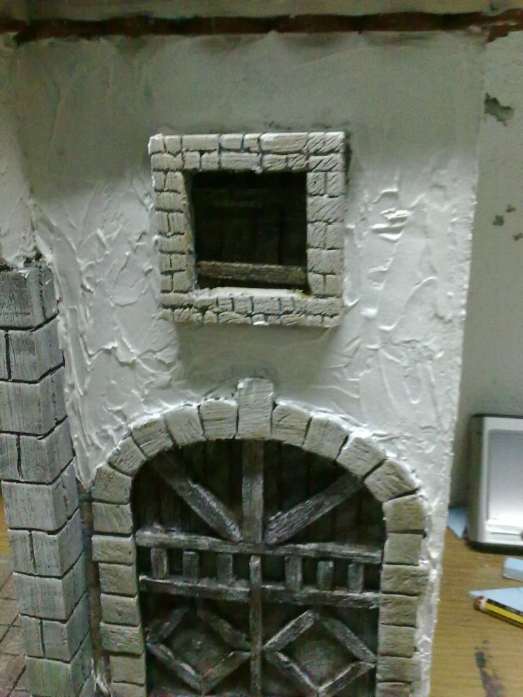 2) La textura de algunas piedras, por ejemplo en las columnas. En lugar de "rallarlas", que parece que tienen betas como la madera, darles golpes para que la textura resulte pétrea.