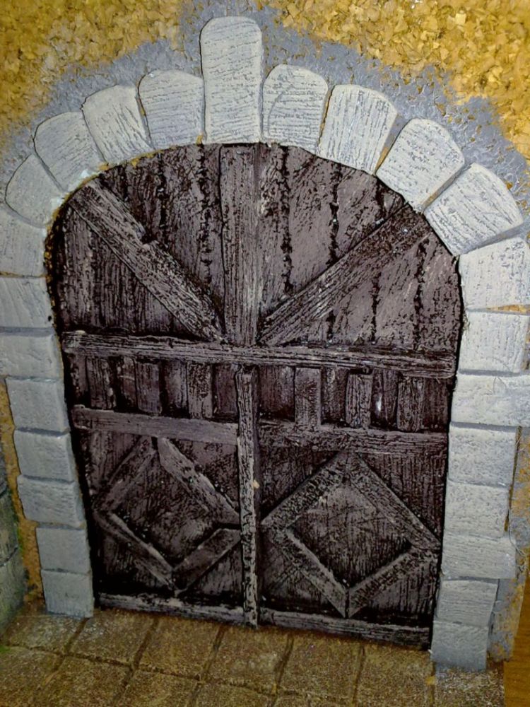 1) La puerta, ¿cómo se abre? Parece que se trata de una puerta de arco con dos hojas (que se abriera en dos, cada hoja con sus goznes en la pared) pero tal y como está configurada no lo veo. Conste que seré yo, que no lo veo.
