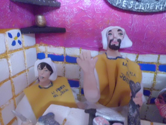 Doy por terminado el interior de la pescadería "La perla del Jordán" ya están los personajes completos: Basiliso Turrubiates, su hijo Ceferino y su amigo y ayudante Agapeo Mastache....Ojalá sea de vuestro agrado...Falta el techo que ya lo construiré y lo mostraré, con el favor de Dios. Saluditos afectuosos.