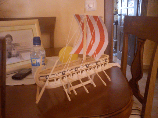 Hola foreros aqui os dejo las fotos de un barco, bueno yo no lo eh echo es una maqueta de madera yo lo unico que eh echo a sido montarlo, haber que os parece.