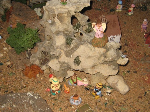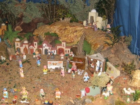 Este es el beln de mi hijo y su mujer. Es pequeño por que todabia esta empezando pero casi todo esta hecho a mano por nosotros incluida las casa. Espero que os guste.