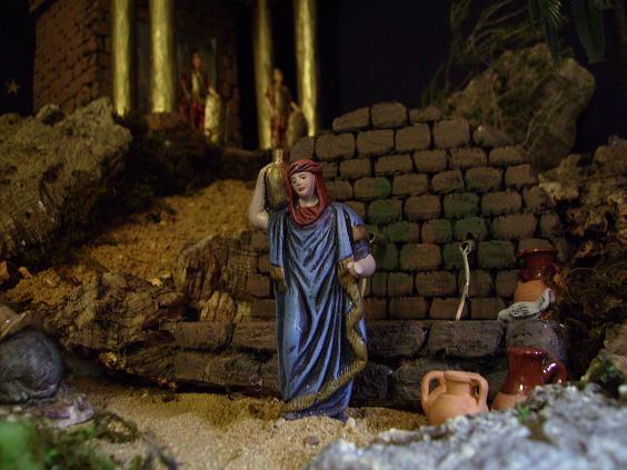 Esta realizado sobre una superficie de 3 metros de lasro por 1.25 metros de ancho. Esta compueto por unas 75 figuras que van desde 8 cm hasta 12 cm realizadas en resina y barro. Todas las construcciones estan realizadas por mi, al igual que el rio, de algo mas de un metro de longitud.
