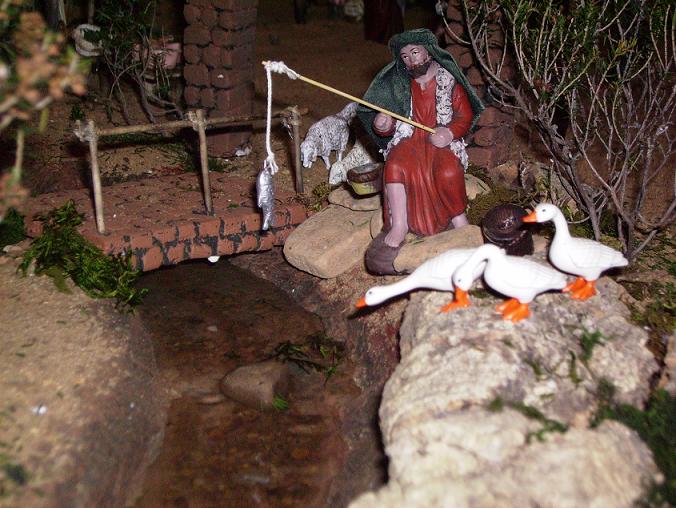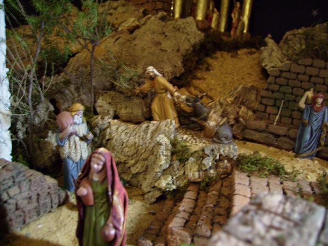 Esta realizado sobre una superficie de 3 metros de lasro por 1.25 metros de ancho. Esta compueto por unas 75 figuras que van desde 8 cm hasta 12 cm realizadas en resina y barro. Todas las construcciones estan realizadas por mi, al igual que el rio, de algo mas de un metro de longitud.