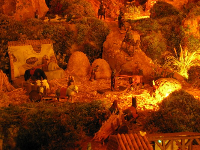 Hay una cosa que sí que me ha llamado la antención, y es que colocas justo la escena principal en segundo plano... tus razones tendrías, pero lo habitual es darle todo el protagonismo, porque si no, el resto del belén no tendría sentido, simbólicamente hablando.