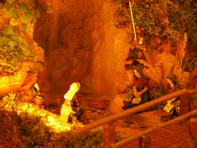 Hay una cosa que sí que me ha llamado la antención, y es que colocas justo la escena principal en segundo plano... tus razones tendrías, pero lo habitual es darle todo el protagonismo, porque si no, el resto del belén no tendría sentido, simbólicamente hablando.