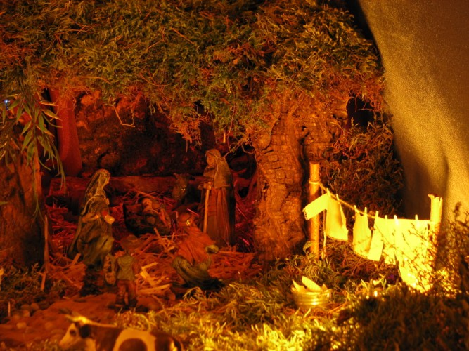 Hay una cosa que sí que me ha llamado la antención, y es que colocas justo la escena principal en segundo plano... tus razones tendrías, pero lo habitual es darle todo el protagonismo, porque si no, el resto del belén no tendría sentido, simbólicamente hablando.