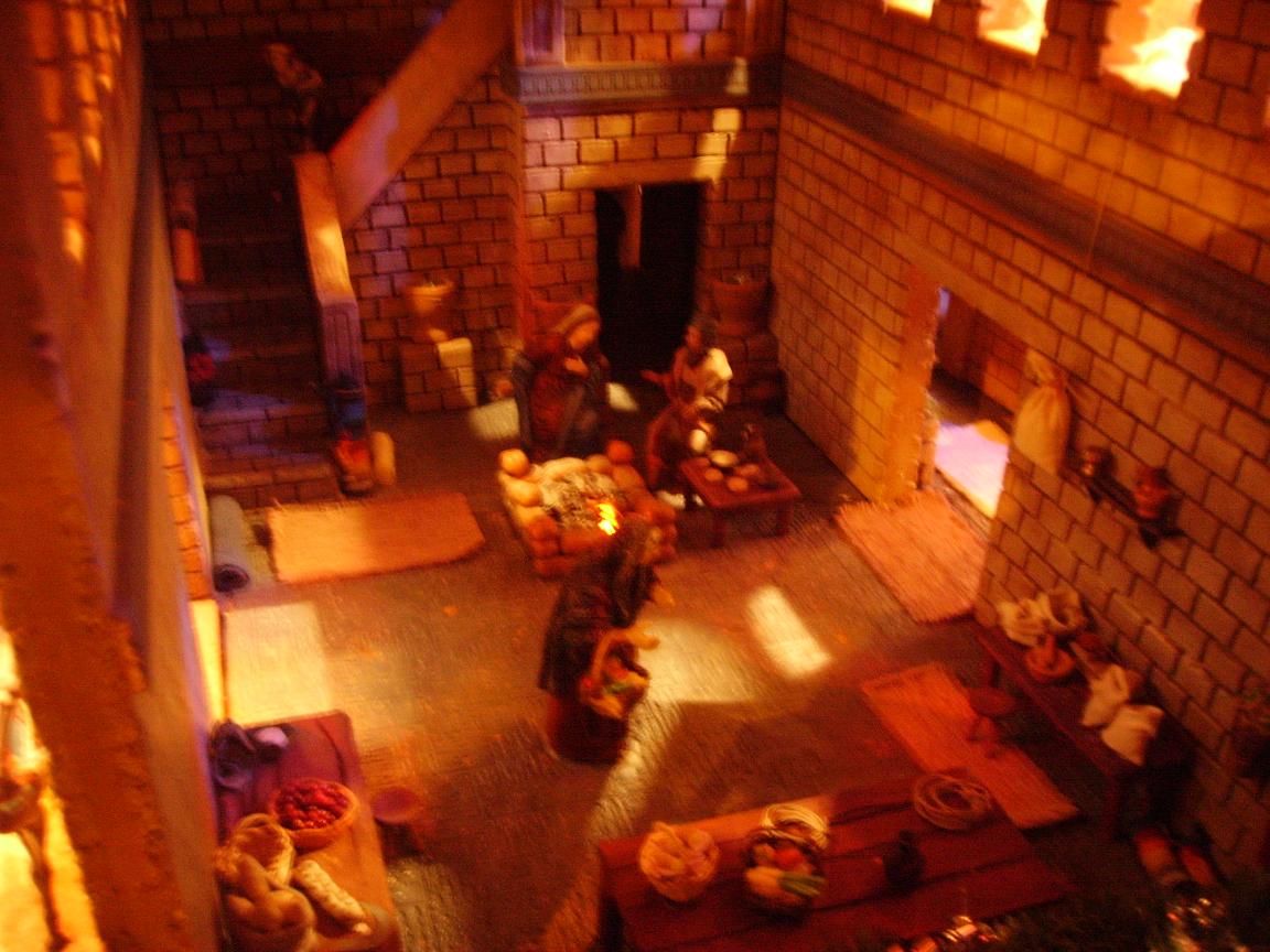 Hola Guillermo: Haber currar y trabajo tiene tu Pessebre, pero lo primero que yo no hubiera hecho es poner el Nacimiento en un Patio a la intemperie y menos nevando, desde mi punto de vista hay que buscar diganos un sitio aunque (pobre, asustero) sea acojedor no creo que a ninguna mujer le gustaria tener un hijo en un patio y nevando.