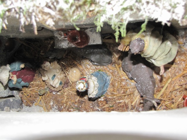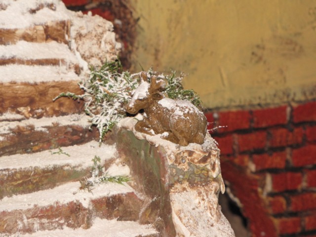lo de la nieve esta muy bien pero cometes un fallo que se areglar para que te quede correctamente y es tapar las peanas,retocar las figuras pintandolas para intentar que no se note mucho que son del todo a cien y poner algo de iluminacion que es facil y barato