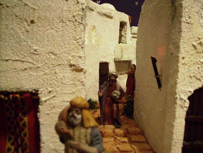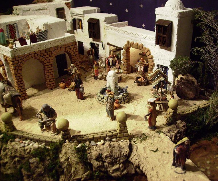 Este es mi belen de este año, que he conservando las mismas construcciones que el año anterior. Consta de unas 50 figuras que van desde ls 8 cm a los 12 cm, más animales y una rito con agua de una metro de longitud. En total tiene una superficie de 3 metros cuadrados.