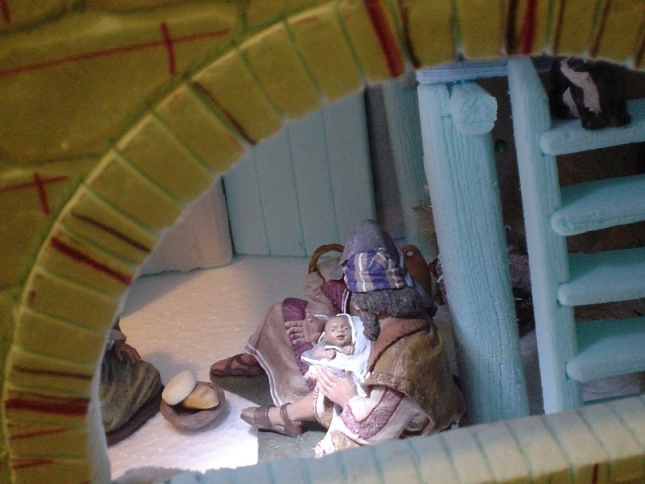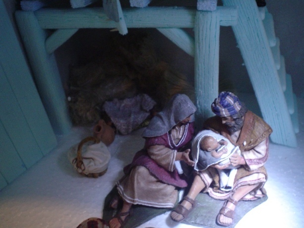 Miguel hayer le puse un monton de paja con una piele de oveja por encima para que Maria tenia un lugar acojedor para dar a la luz.