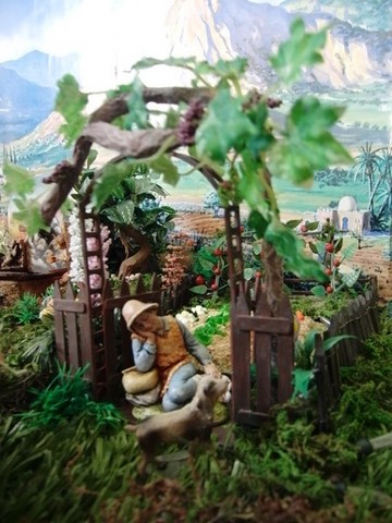 ¡Bienvenida!¿que bonito,milagros!me gusta tu puesto de perfumes, tu huerto (lindisimo )y tus construcciones.Dices que no eres buena para las manualidades,no te importe,yo si que soy pesima,y paso todo el año buscando cositas y cajitas para el mio, luego transformo con un poco de cemento blanco,y,listo.ja,ja,dices que quieres que opinemos,pues mira, yo ponia un fondo como el tuyo(que no digo que este mal) y era muy complicado, un dia vi una pieza de tela muy baratita y tenia un color azul cielo bonito, asi que la compré,luego estuve algunos años prendiendola por arriba con alfileres(de manera que las de detras sostenian el cielo pero estas no se veian,hasta que un buen dia me decidi,y con la misma tela, hice unas cortinas a las cuales les pego unas pegatinas de estrellas y queda chulisimo (las cortinas de detrás las quito)sin mas,un abrazo,y nuevamente,bienvenida.