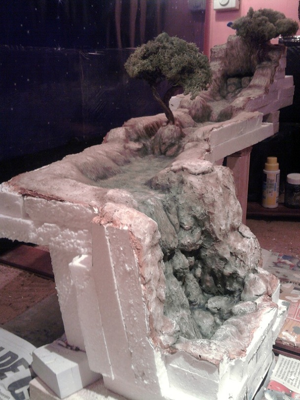 Esta tarde he quitado el Belén, y ahora, que estaba mirando las fotos para subirlas aquí, me he dado cuenta de que son escasas y de no muy buena calidad, pero ya es tarde. De todos modos servirán para mostrarles el susodicho Belén y un escueto paso a paso, por llamarlo de alguna manera, del río que he elaborado para este año.