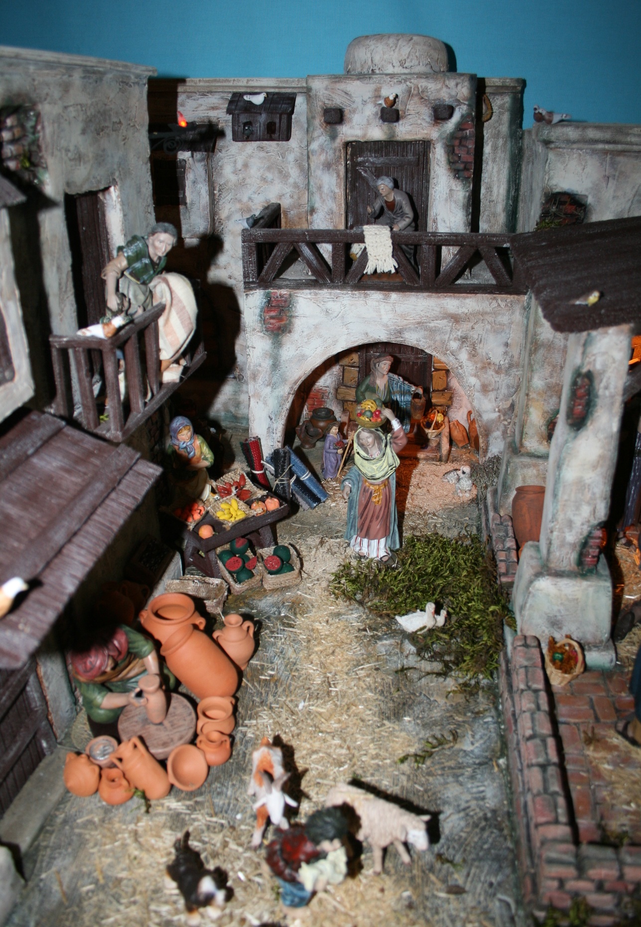 HOla Pilar, muy bonito tu belén, parece que tienes poco espacio pero está muy bien planteado todo; tienes escenas muy bonitas, la viejita asomada al balcón me encanta, está linda.