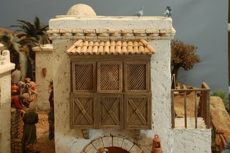 Está hecho sobre una superficie de 2,40x1,20 m. Antes hacía las edificaciones de menor tamaño, pero este año, con un poco más de tiempo, me he decidido hacerlas de esta forma, que a mí, particularmente, me ha satisfecho bastante. Incluso me he atrevido con las palomas....