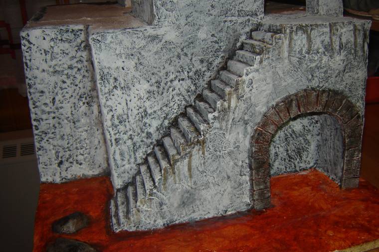 Como información (ya que no lo he explicado con imágenes) la escala está hecha exclusivamente con cartón, peldaño a peldaño. Un trabajo lento pero que da buen resultado final.