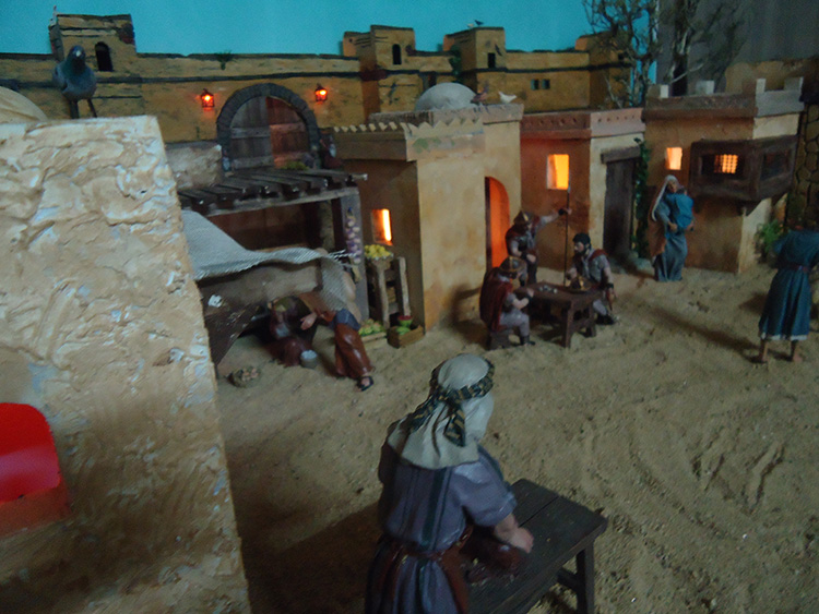 Precioso Belén, al que no le falta detalle. Magnífica la tercera fotografía, donde vemos la espalda de los Reyes Magos, dando una gran sensación de movimiento y profundidad.