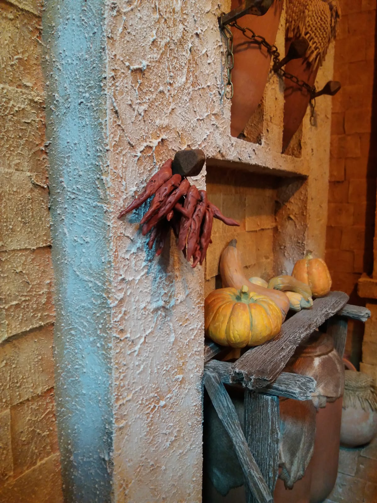 Es muy significativo el cuidado que se percibe en la disposición de cada elemento. Las figuras son muy bonitas y están perfectamente integradas en la escenografía. Las miradas y los gestos entre María y José son muy elocuentes. Felicidades.