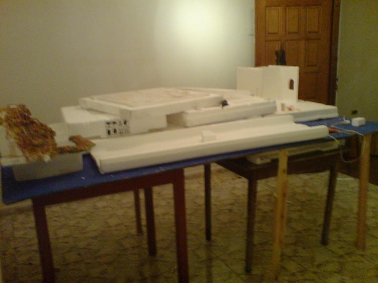 Hola a Todos ayer termine mi belen,no es de "maestros" pero esta hecho con mucho cariño y Amor y con muuuuchas de las tecnicas que ustedes amablemente comparten con nosotros por ejemplo del foro puse un caldero de agua hirviendo con brasitas de cristales rotos, una fuente de cabeza de leon un puesto de alfombras y algo más jeje y una panaderia que he dedicado a todos ustedes los foreros llamada Panaderia El Belenista