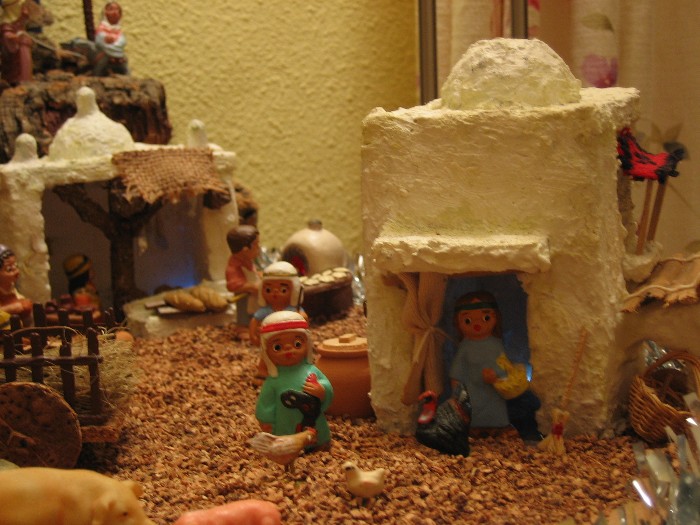 Hace ya meses que os sigo a través del foro, la verdad que me apasionan vuestros trabajos, así como vuestros consejos (he ido tomando nota de muchos de ellos jej) y ahora pues me atrevo a enseñaros mi belén. No es nada del otro mundo, comparado con vuestras obras de arte, pero bueno se hace lo que se puede jej. Se trata de un pequeño belén (en mi casa no hay espacio para mucho, por desgracia para mi en esta afición jaj) y está realizado con figuras de barro de estas pequeñitas de estilo andaluz. La mayoría de ellas son muy antiguas y las he ido heredando de mi abuela que desde jóven fue realizando su colección de este estilo; así que como ella monta sólo el pesebre y algunos pastores, pues me ha ido regalando figuritas.