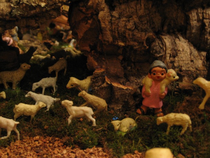 También monto el belén de mi antiguo instituto (ese si está ya más currado), se trata de una colección que la congregación religiosa fue heredando y está compuesto por figuras de olot (ahora mismo no encuentro als fotos, pero si veo alguna os la enseño, si no este año cuando lo monte os subiré alguna). Y también para esta congregación, le realizo "un apaño" simulando un pesebre con unas tallas de un San José y una virgen que tienen en la capilla, por lo que monto un pequeño altar para la capilla que preside las misas (de este si guardo fotos).