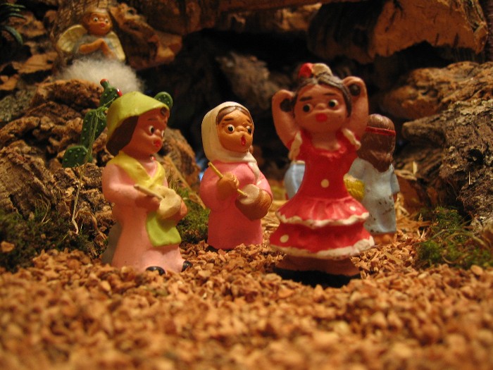 Hace ya meses que os sigo a través del foro, la verdad que me apasionan vuestros trabajos, así como vuestros consejos (he ido tomando nota de muchos de ellos jej) y ahora pues me atrevo a enseñaros mi belén. No es nada del otro mundo, comparado con vuestras obras de arte, pero bueno se hace lo que se puede jej. Se trata de un pequeño belén (en mi casa no hay espacio para mucho, por desgracia para mi en esta afición jaj) y está realizado con figuras de barro de estas pequeñitas de estilo andaluz. La mayoría de ellas son muy antiguas y las he ido heredando de mi abuela que desde jóven fue realizando su colección de este estilo; así que como ella monta sólo el pesebre y algunos pastores, pues me ha ido regalando figuritas.