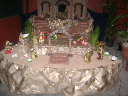 Hola amigos del foro, este año por cuestiones de estudio no hubo tiempo para la inspiración, por eso creé este belén inspirado en el de Miguel, de Venezuela, que tan amablemente me "autorizó" para hacer una versión del suyo.......No es un trabajo tan estupendo como el que ustedes realizan, pero espero sus comentarios para poder mejorar, más que todo porque ayer, todo el montaje fue destruido por una lluvia inesperada, y ahora debo rehacerlo, con lo poco que pude salvar de él. La mayoría de las figuras fueron hechas por mí, y es la primera vez que hago algunas, de ahí que no sean tan buenas como las de algunos foreros