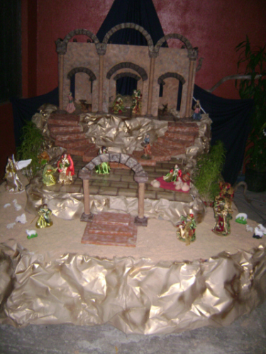 Hola amigos del foro, este año por cuestiones de estudio no hubo tiempo para la inspiración, por eso creé este belén inspirado en el de Miguel, de Venezuela, que tan amablemente me "autorizó" para hacer una versión del suyo.......No es un trabajo tan estupendo como el que ustedes realizan, pero espero sus comentarios para poder mejorar, más que todo porque ayer, todo el montaje fue destruido por una lluvia inesperada, y ahora debo rehacerlo, con lo poco que pude salvar de él. La mayoría de las figuras fueron hechas por mí, y es la primera vez que hago algunas, de ahí que no sean tan buenas como las de algunos foreros